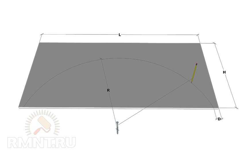 Для получения сектора по радиусу, лучше использовать шило, гвоздь и карандаш, подвязанный ниткой или верёвкой. Длина нитки от карандаша до гвоздя определит радиус сектора.
