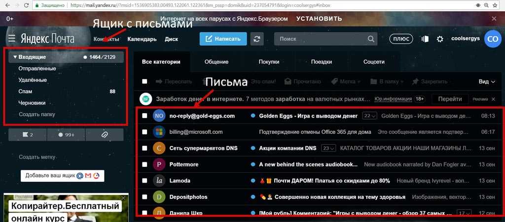 Если вы правильно ввели адрес и пароль откроется папка «Входящие». Здесь будут все письма, которые пришли на вашу почту.