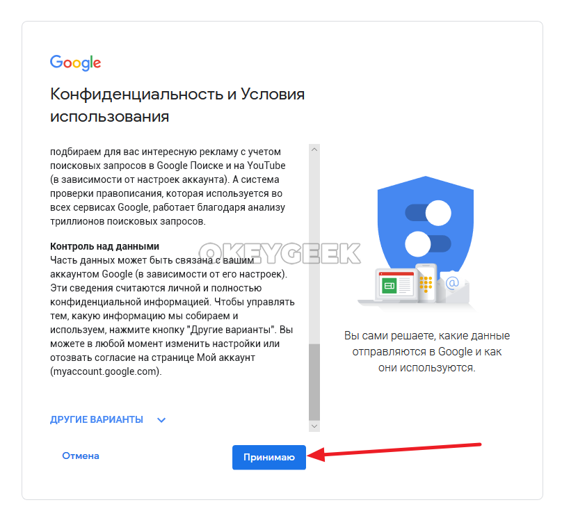 5 . Примите условия использования, нажав кнопку «Принимаю».