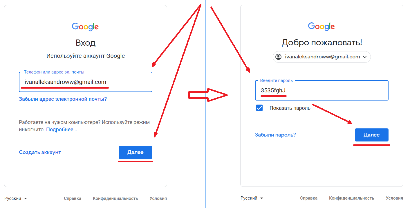 Перейти по указанной ссылке на страницу входа в Gmail.com, после чего: