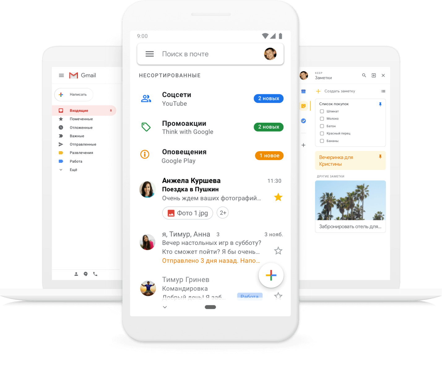 Входящие письма, в свою очередь, поделены на несколько разделов, среди которых промоакции (безобидная реклама), соцсети и основные письма.