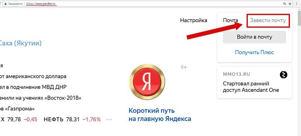 2. Щелкните по пункту «Почта» в правом верхнем углу сайта.