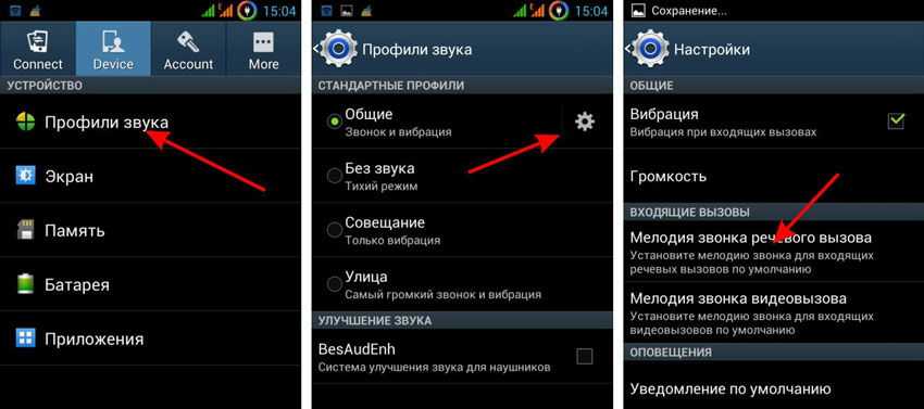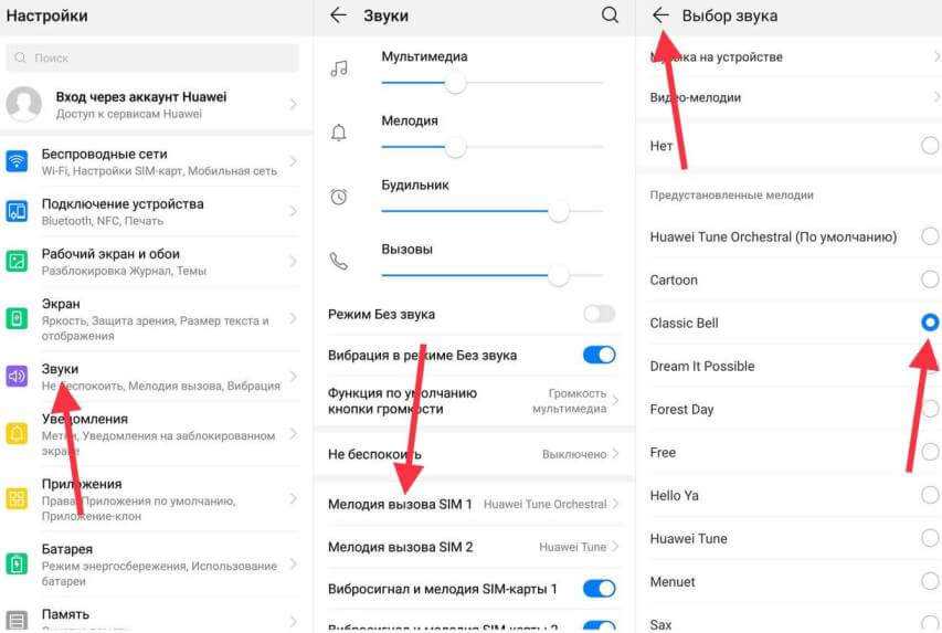 Обычный способ смены мелодии звонка