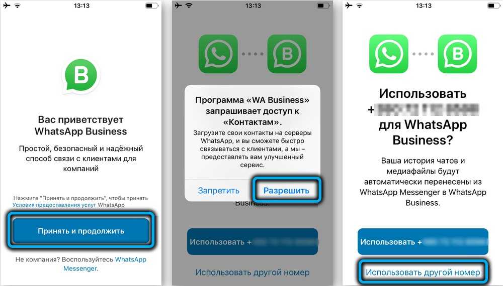 Для этого предложение использовать зарегистрированный номер нужно проигнорировать, выбрав вариант «Использовать другой номер». Кстати, установку бизнес-версии приложения вполне можно использовать и на Android-устройствах в качестве альтернативы всем рассмотренным вариантам.