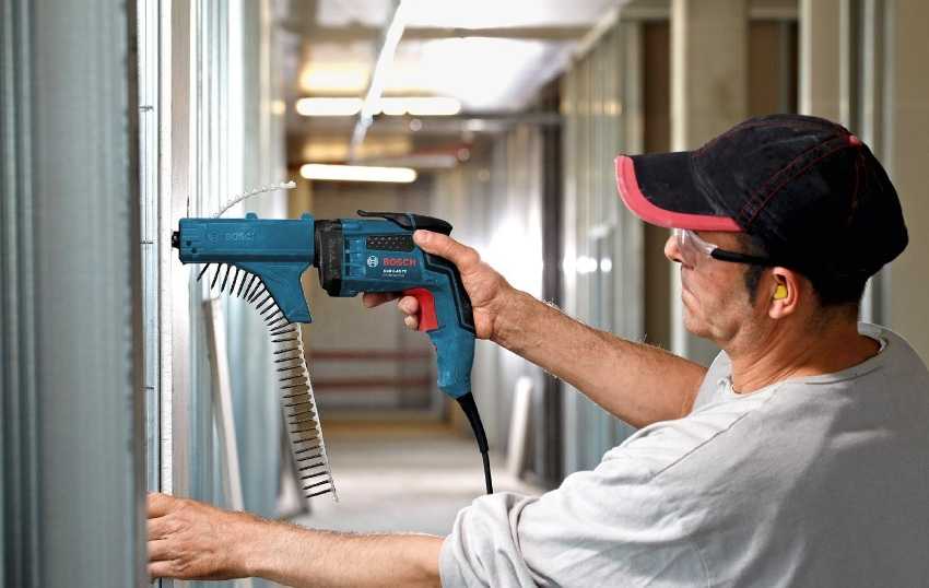 - При наличии необходимого опыта в выполнении конструкций из гипсокартона можно приобрести автоматический шуруповерт с подачей саморезов.