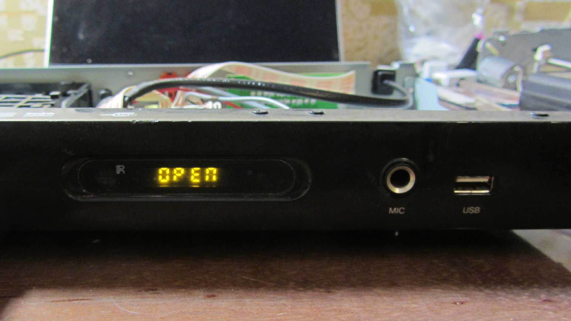 Наличие паразитного сопротивления в кнопке проявляется так: при нажатии кнопки извлечения диска, головка делает пару шагов назад, двигатель загрузки/выгрузки диска кратковременно включается и все стопорится. На индикаторе появляется надпись «OPEN».