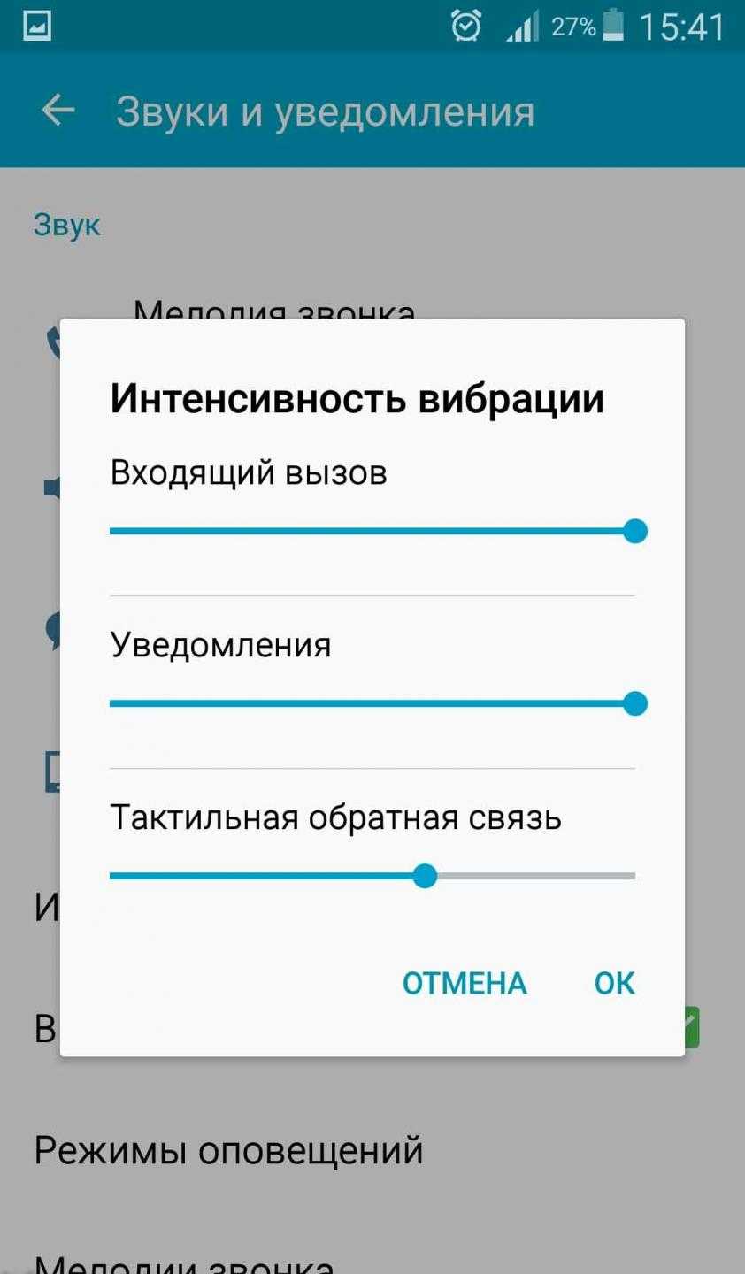 Настройки вибрации для звонков и уведомлений в Андроид