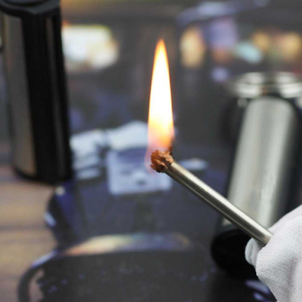 - Горит дольше, чем привычный деревянный аналог, причем всё это время не будет обжигать пальцы – пламя всегда находится на головке.